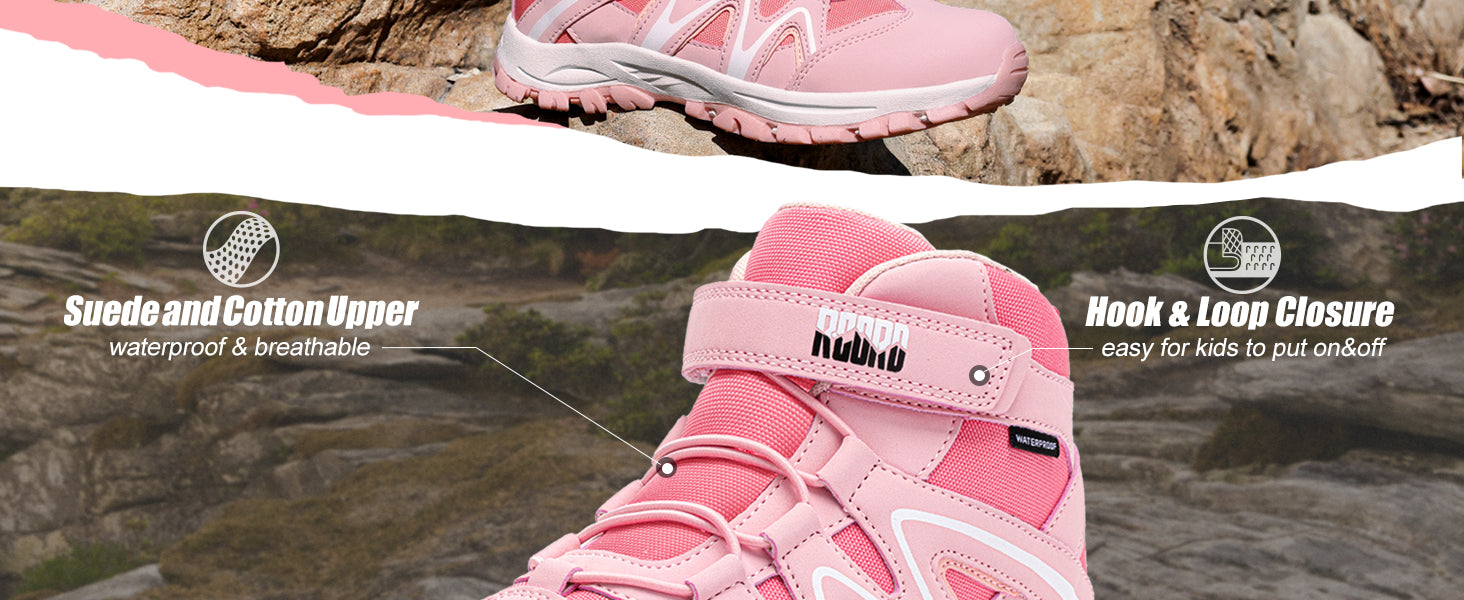 - BREATHABLE & WATER-RESISTANT: Our hiking boots are made with breathable oxford and lightweight artificial leather that's water-resistant and easy to clean. The mesh lining keeps your child's feet cool and dry.