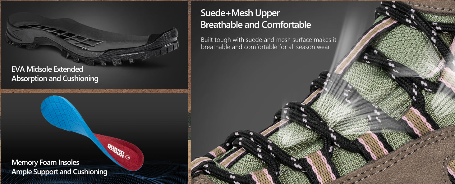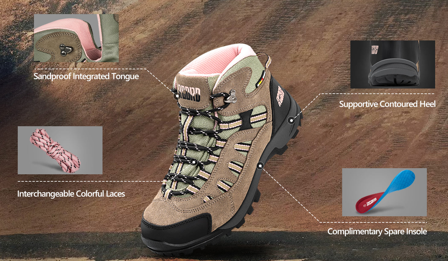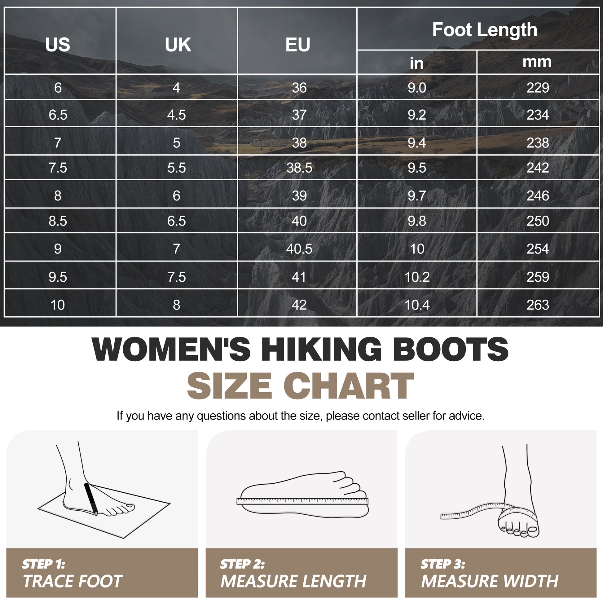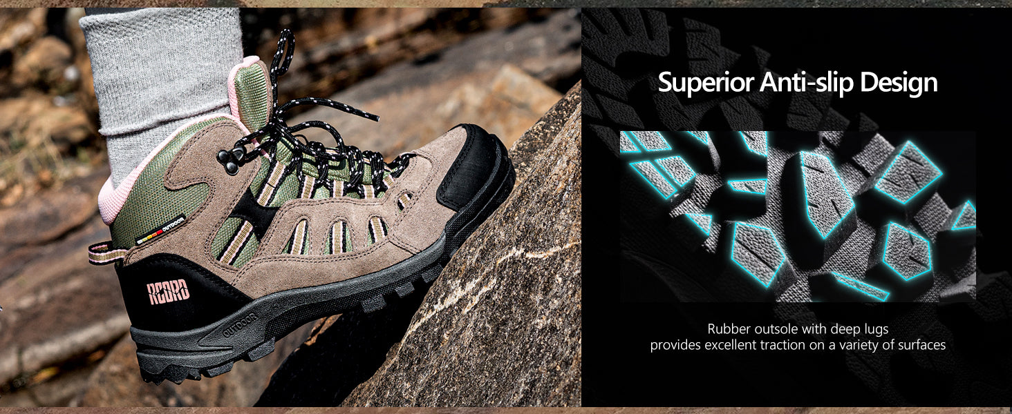 • GREAT TRACTION - With an advanced rubber tread and multi-directional lugs, you can get durable traction on variable terrain from our hiking boots for women. The soft insole moulds to your feet providing support & comfort
